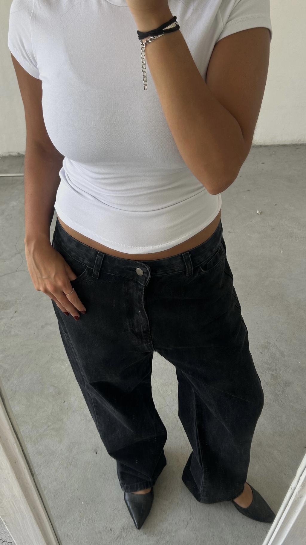 Estilo relajado, actitud total. Este jean de calce wide leg combina un diseño moderno y descontracturado con la firmeza del denim rígido. Su corte recto y amplio desde la cadera hasta el bajo le da ese look canchero y atemporal que va con todo.